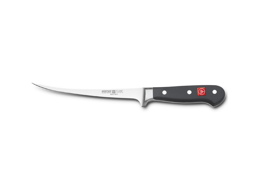 Pro přesné filetování ryb, zvěřiny i masa. Unikátní, flexibilní tvar čepele je funkční jak v kuchyni, tak venku v rybářském i loveckém prostředí.
